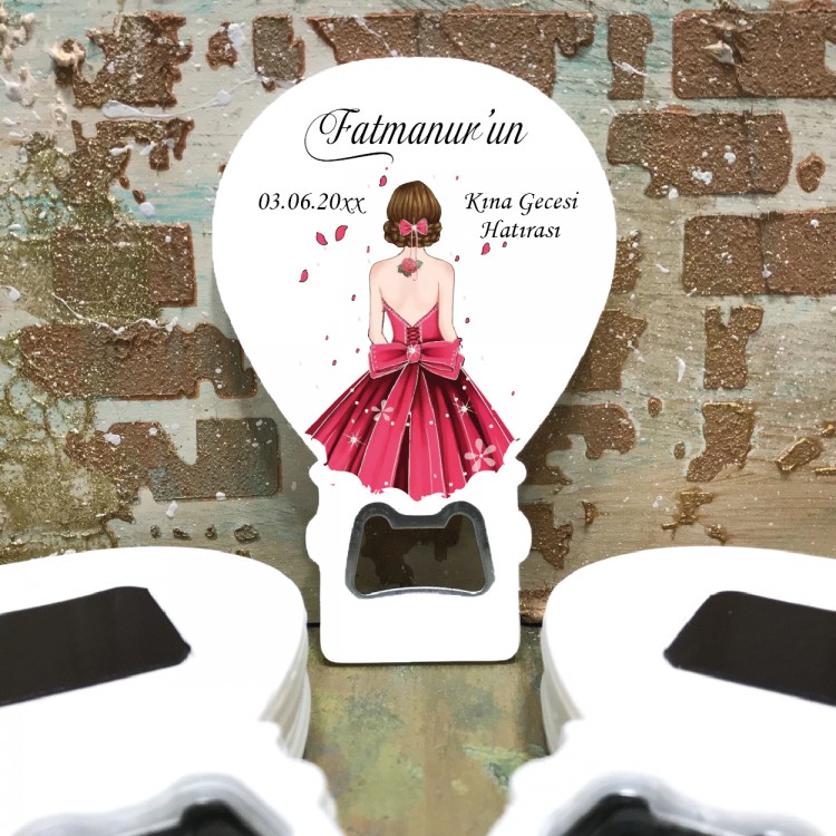 Balon Açacaklı Magnet 0191 - Kırmızı Elbiseli Kına Hatırası Hediyelik