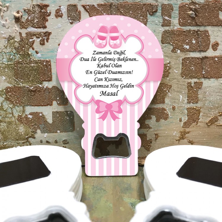Balon Açacaklı Magnet 180 - Pembe Fiyonklu Yenidoğan Magnet