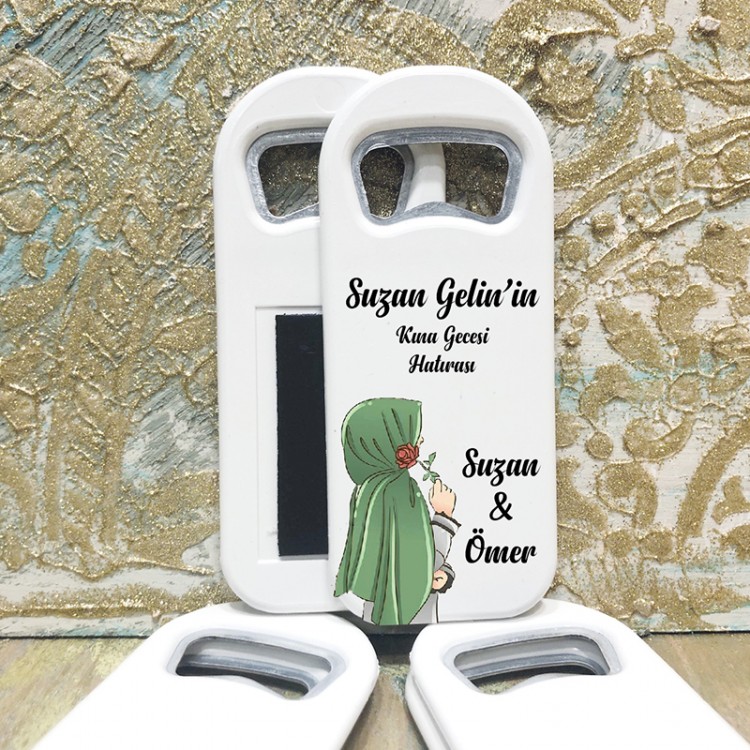 Dikdörtgen Açacaklı Magnet 1036 - Tesettürlü Kına Hatırası, Bekarlığa Veda Hediyelik Magnet