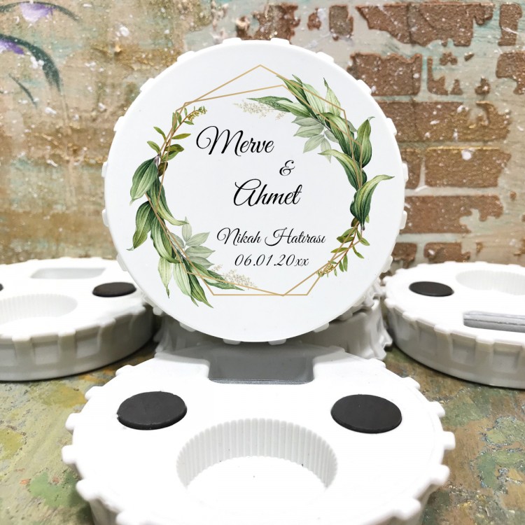 Kapak Açacaklı Magnet 0721 - Yeşil Çiçekli Nişan, Söz, Nikah Hediyelik Magnet