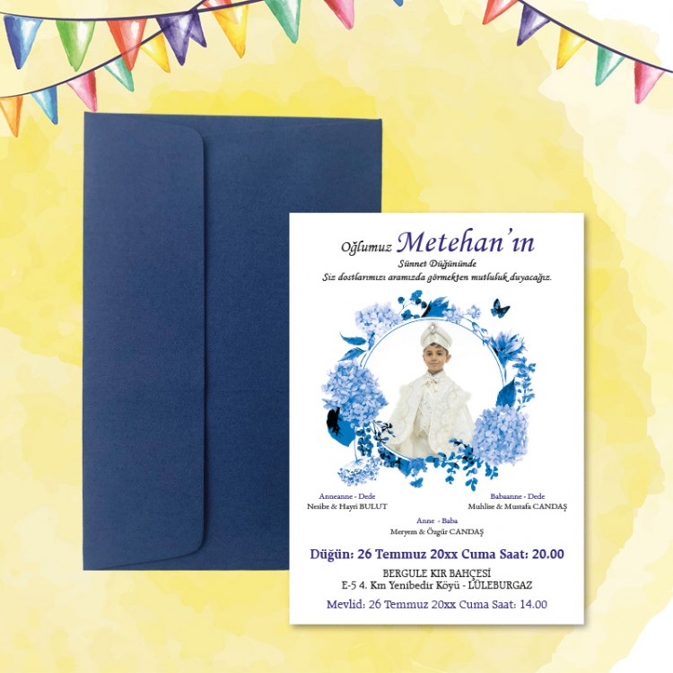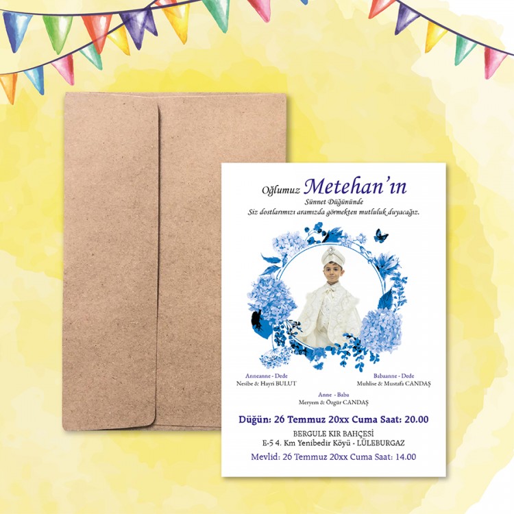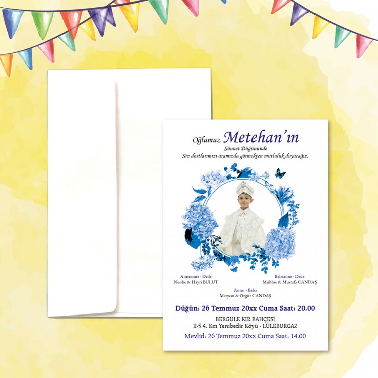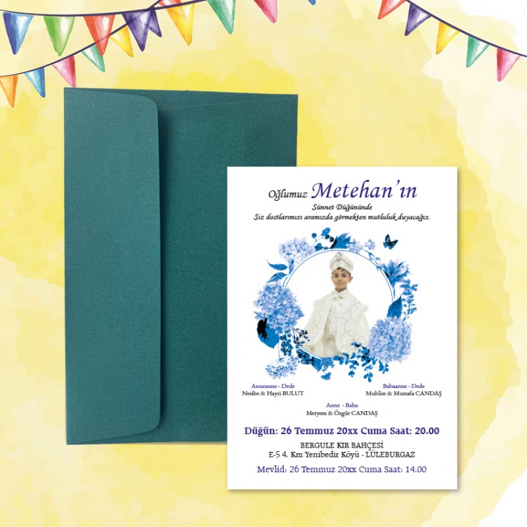Davetiyenizi istediğiniz şekilde hazırlayıp beğendiğiniz zarf rengi ile sipariş verebilirsiniz.