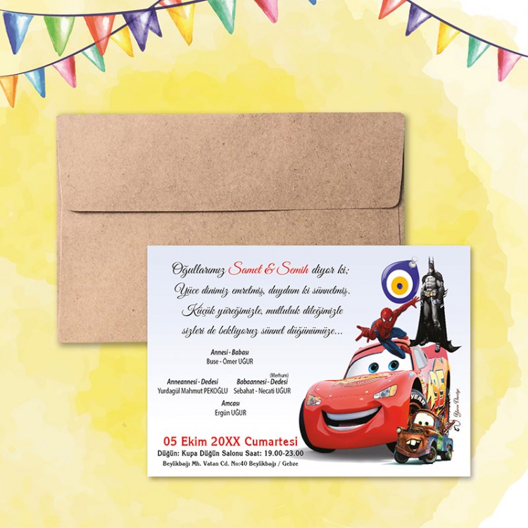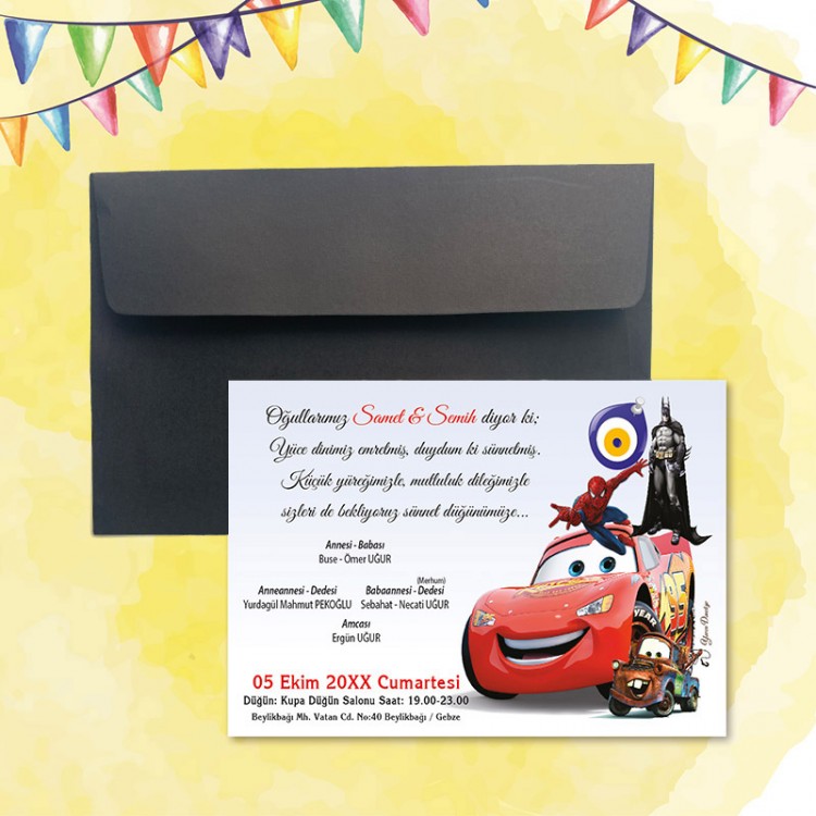 Davetiyenizi istediğiniz şekilde hazırlayıp beğendiğiniz zarf rengi ile sipariş verebilirsiniz.