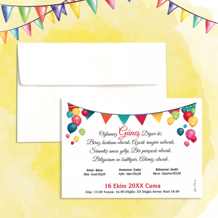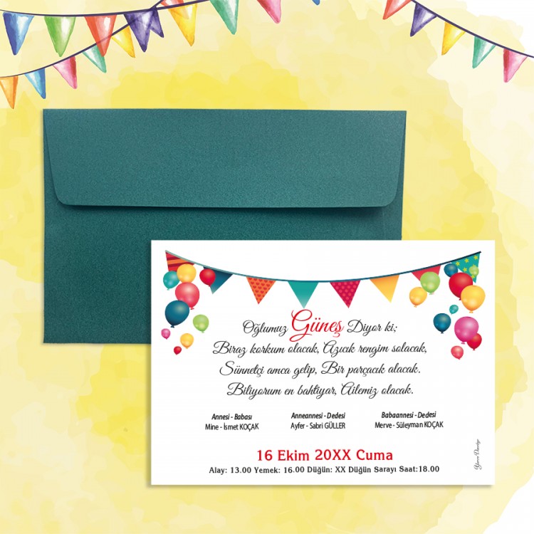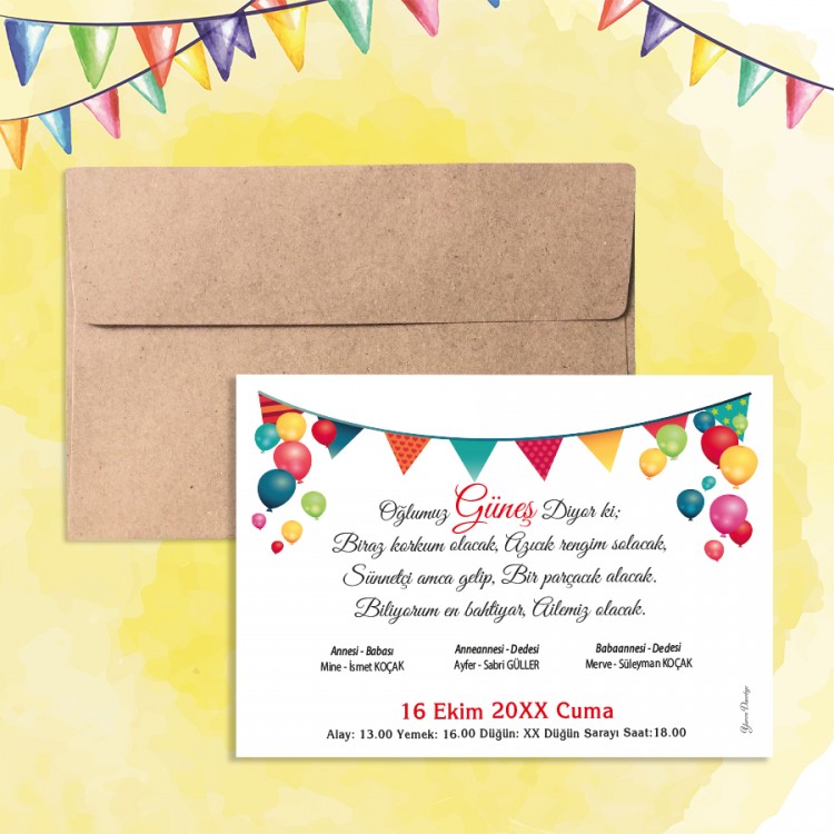 Davetiyenizi istediğiniz şekilde hazırlayıp beğendiğiniz zarf rengi ile sipariş verebilirsiniz.