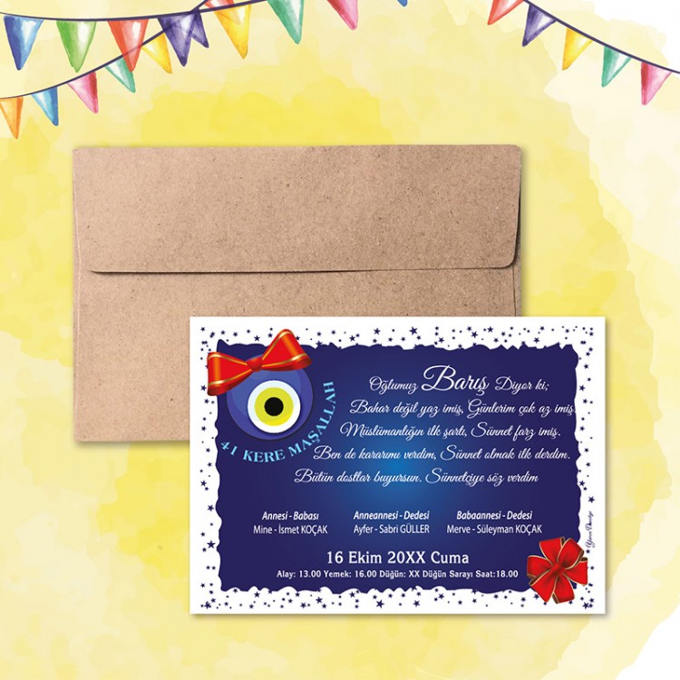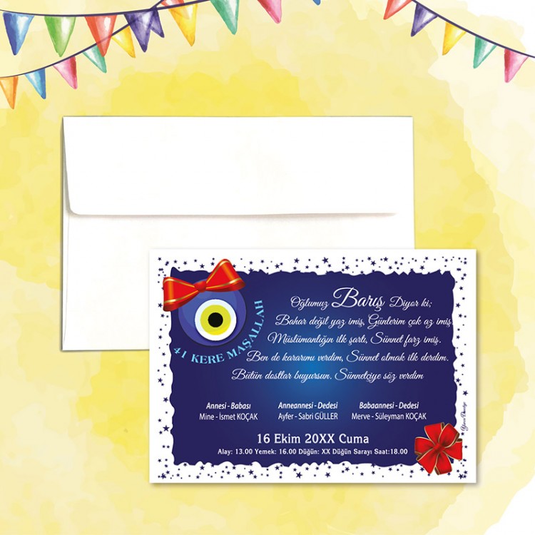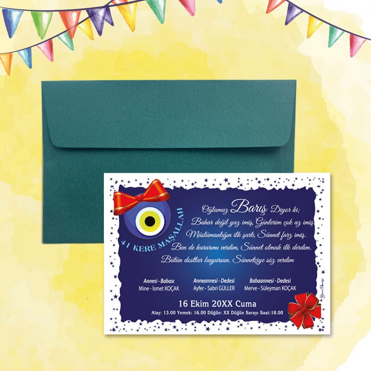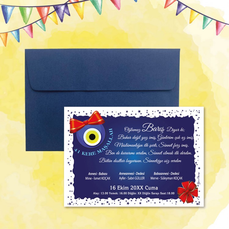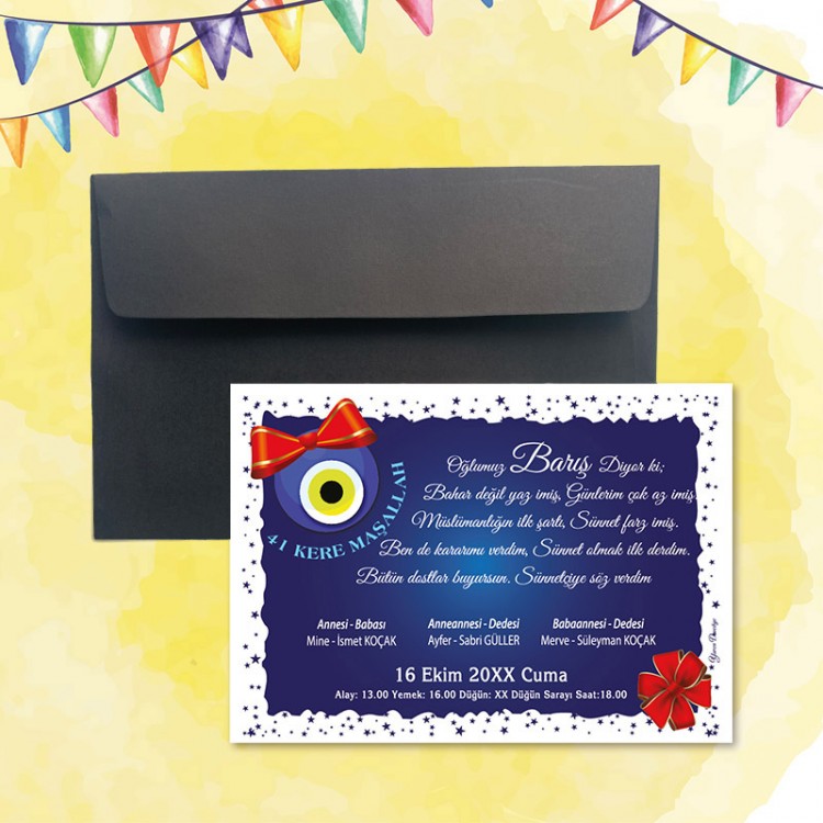 Davetiyenizi istediğiniz şekilde hazırlayıp beğendiğiniz zarf rengi ile sipariş verebilirsiniz.