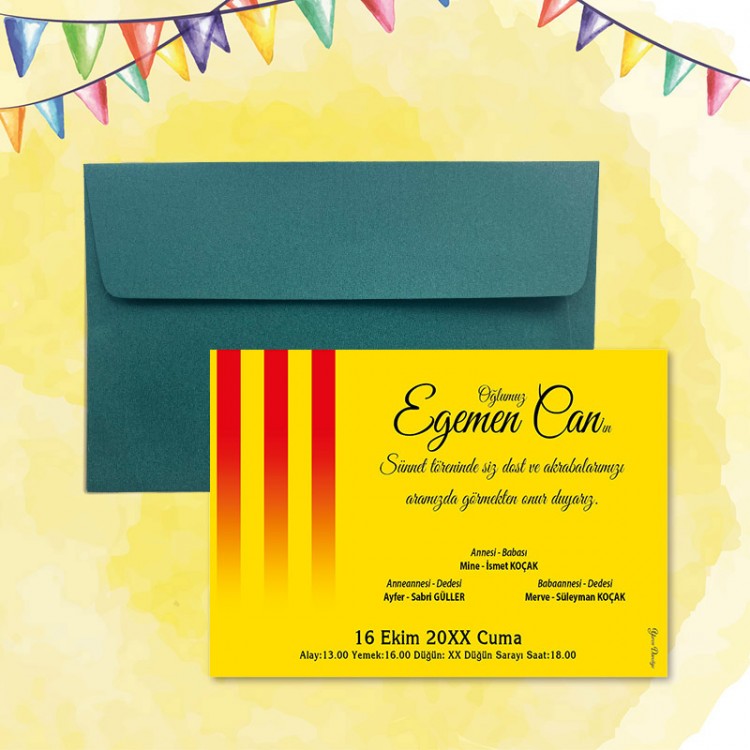 Davetiyenizi istediğiniz şekilde hazırlayıp beğendiğiniz zarf rengi ile sipariş verebilirsiniz.