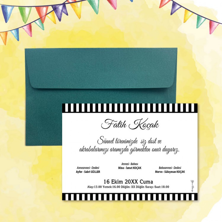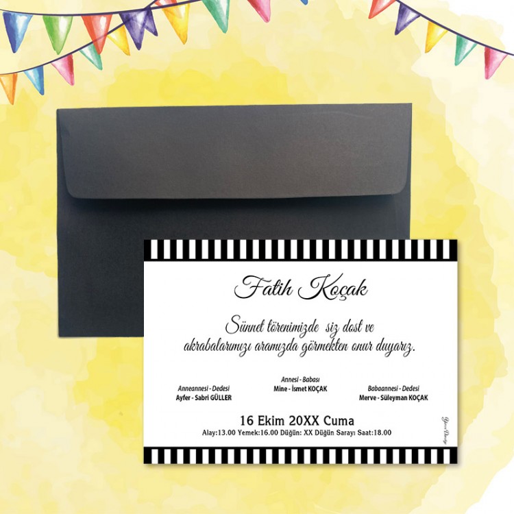 Davetiyenizi istediğiniz şekilde hazırlayıp beğendiğiniz zarf rengi ile sipariş verebilirsiniz.
