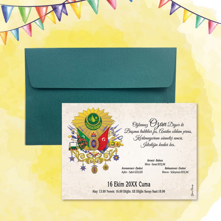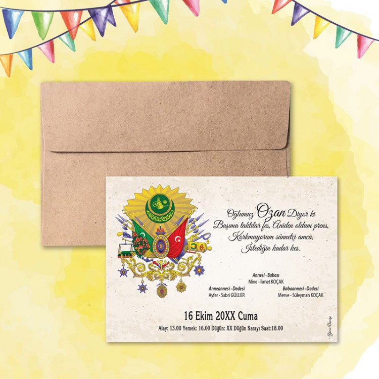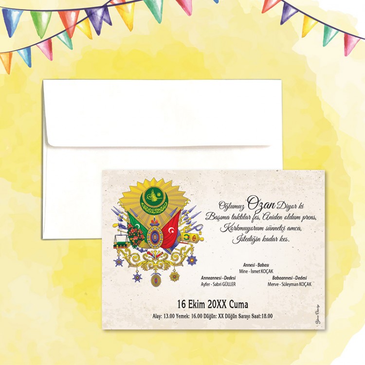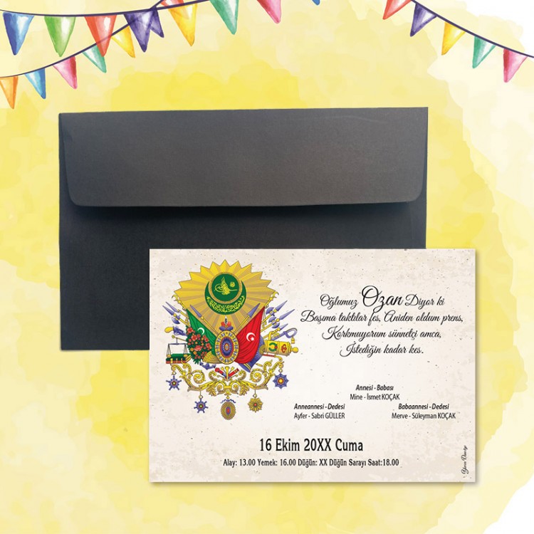 Davetiyenizi istediğiniz şekilde hazırlayıp beğendiğiniz zarf rengi ile sipariş verebilirsiniz.