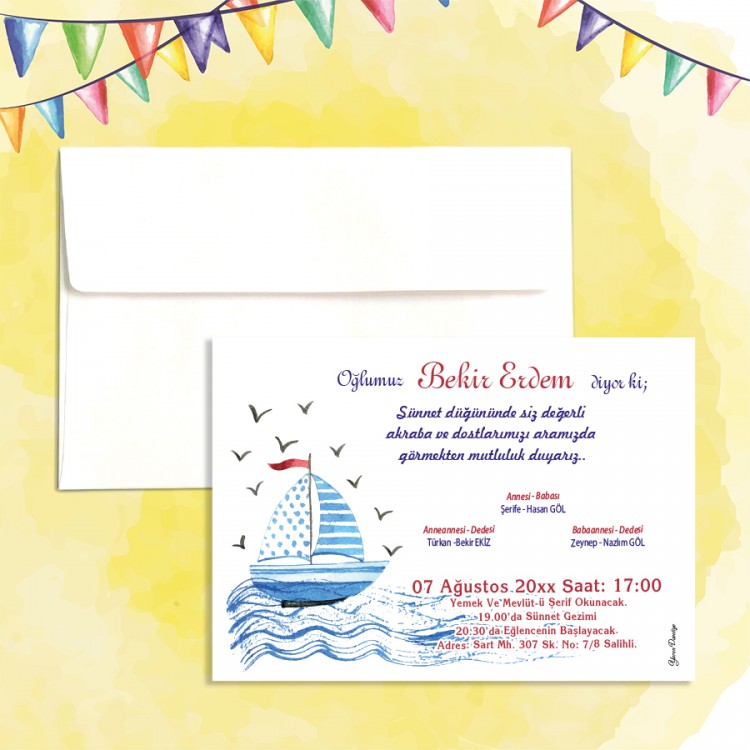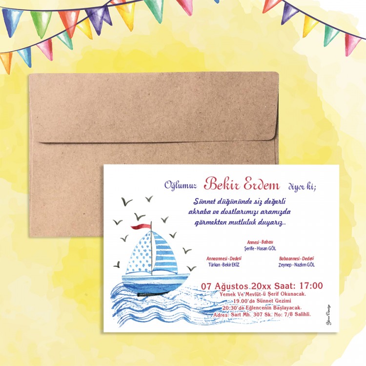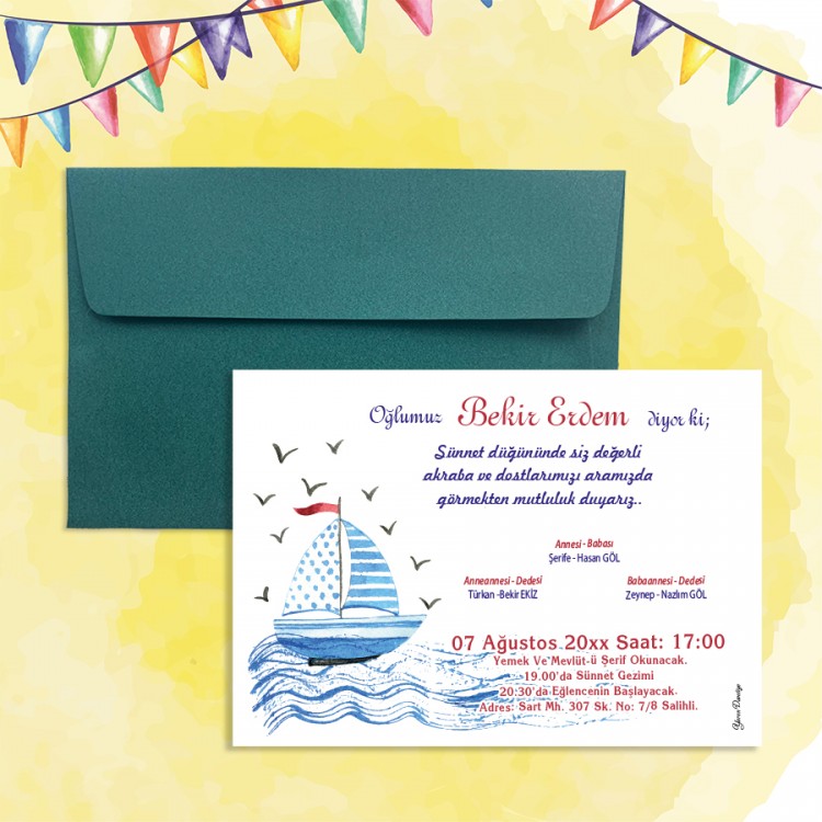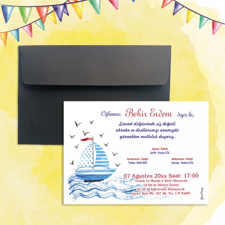 Davetiyenizi istediğiniz şekilde hazırlayıp beğendiğiniz zarf rengi ile sipariş verebilirsiniz.