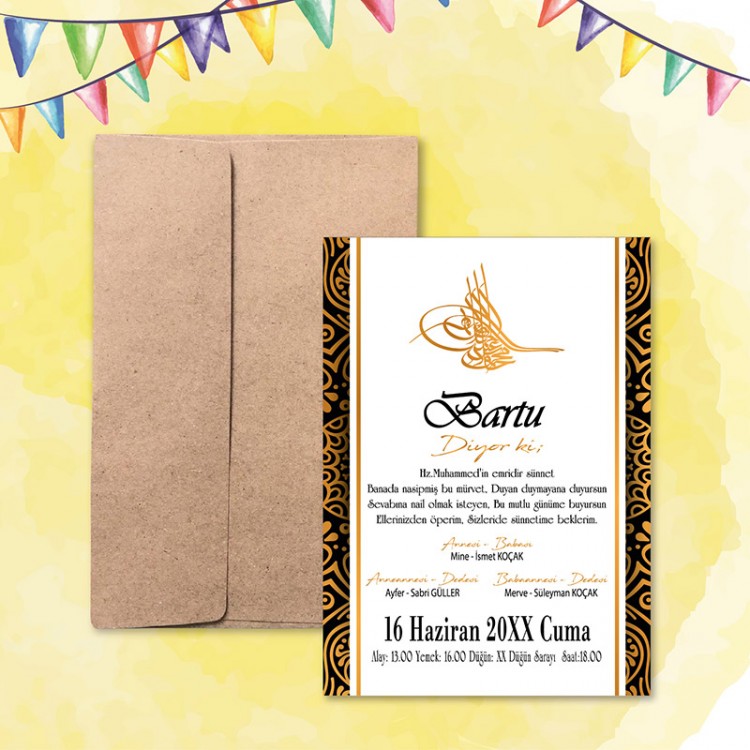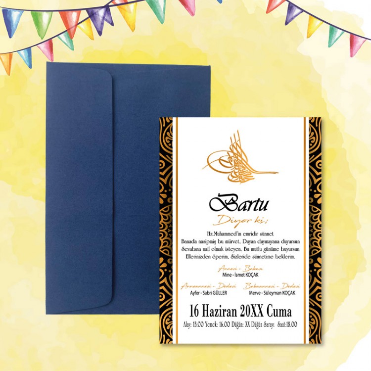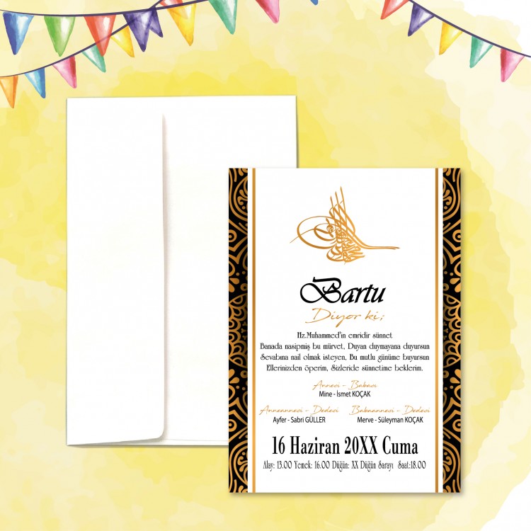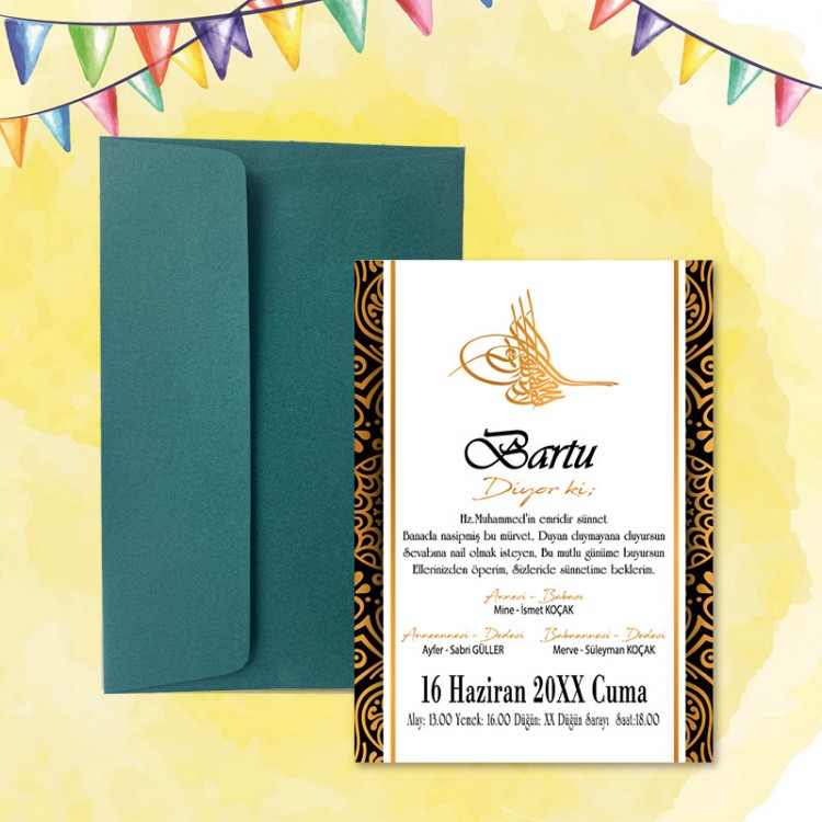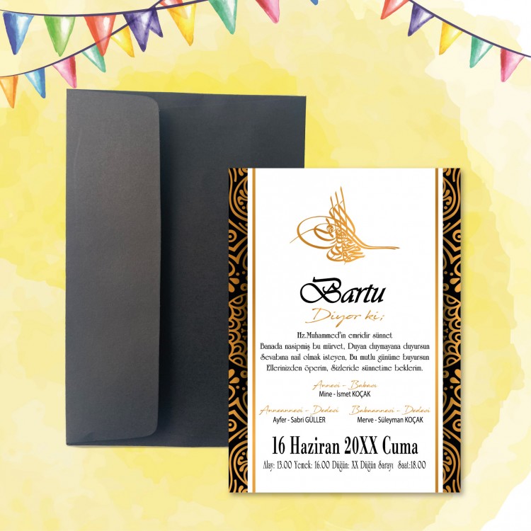 Davetiyenizi istediğiniz şekilde hazırlayıp beğendiğiniz zarf rengi ile sipariş verebilirsiniz.