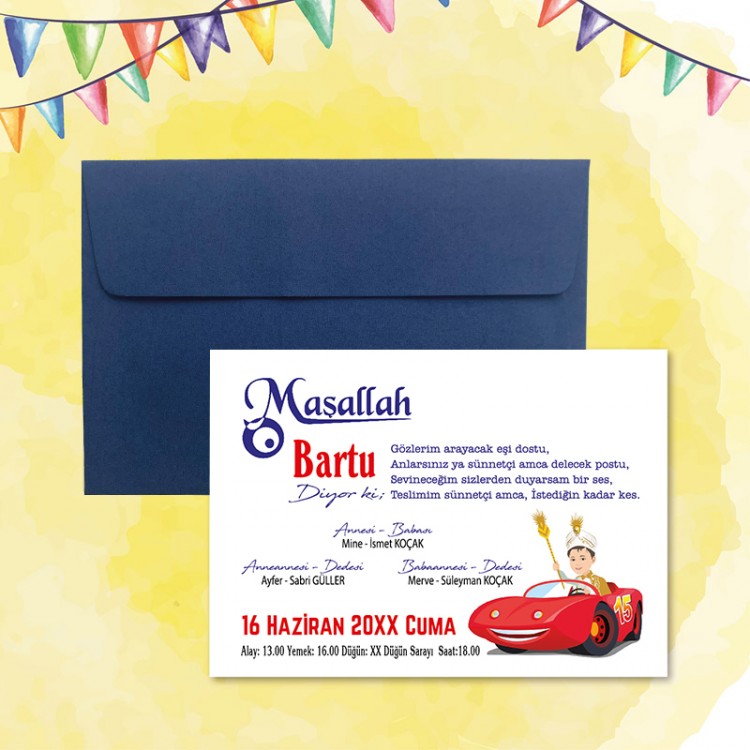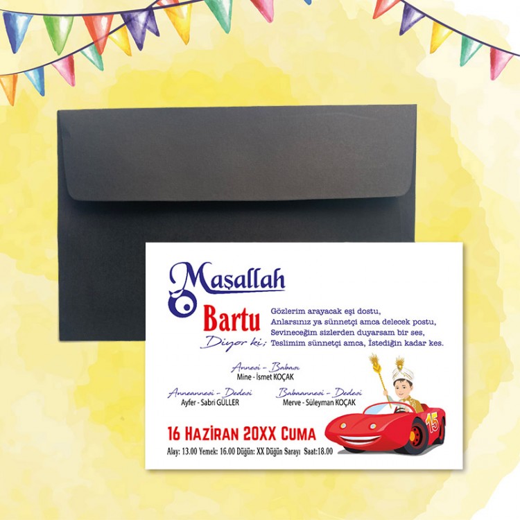 Davetiyenizi istediğiniz şekilde hazırlayıp beğendiğiniz zarf rengi ile sipariş verebilirsiniz.