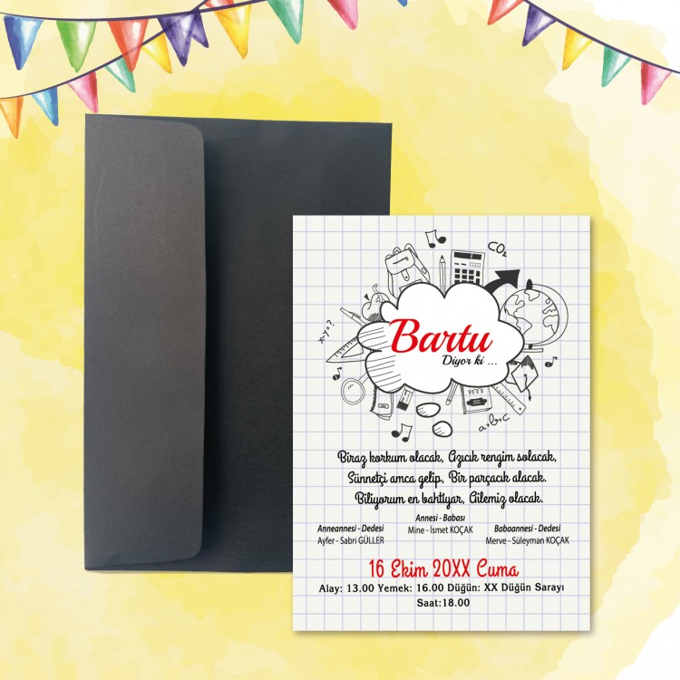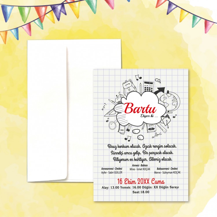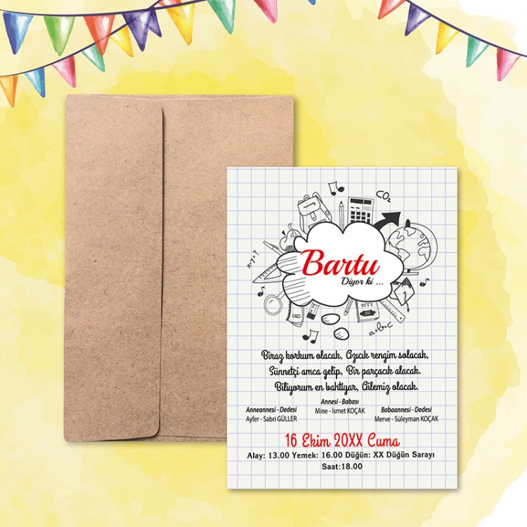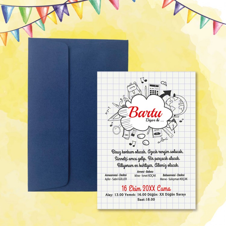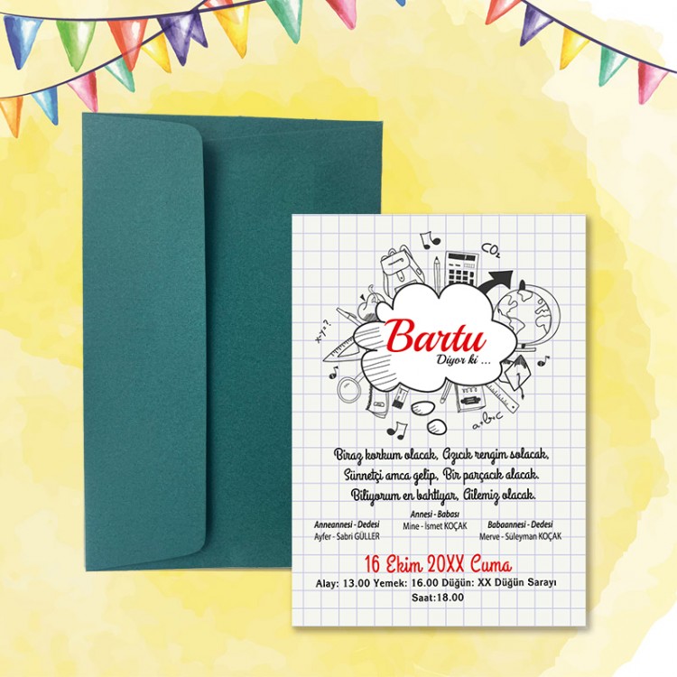 Davetiyenizi istediğiniz şekilde hazırlayıp beğendiğiniz zarf rengi ile sipariş verebilirsiniz.