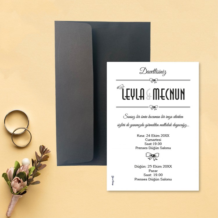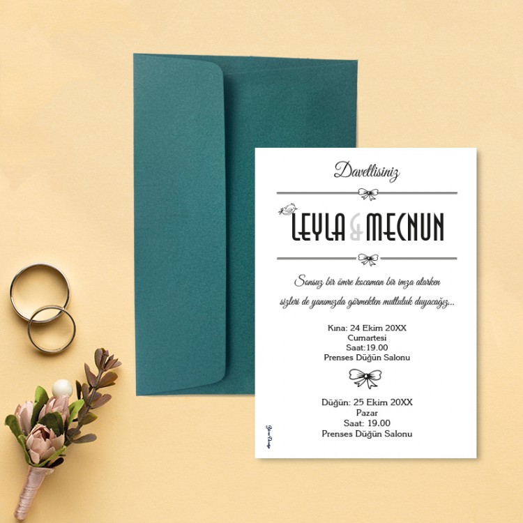Davetiyenizi istediğiniz şekilde hazırlayıp beğendiğiniz zarf rengi ile sipariş verebilirsiniz.
