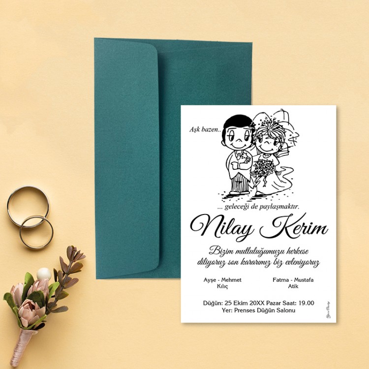 Davetiyenizi istediğiniz şekilde hazırlayıp beğendiğiniz zarf rengi ile sipariş verebilirsiniz.
