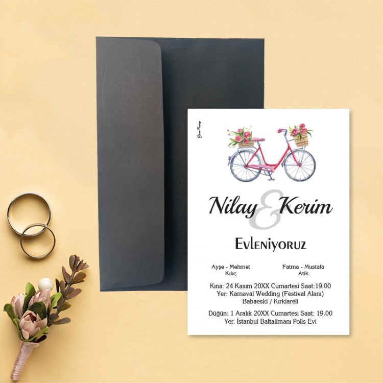 Davetiyenizi istediğiniz şekilde hazırlayıp beğendiğiniz zarf rengi ile sipariş verebilirsiniz.