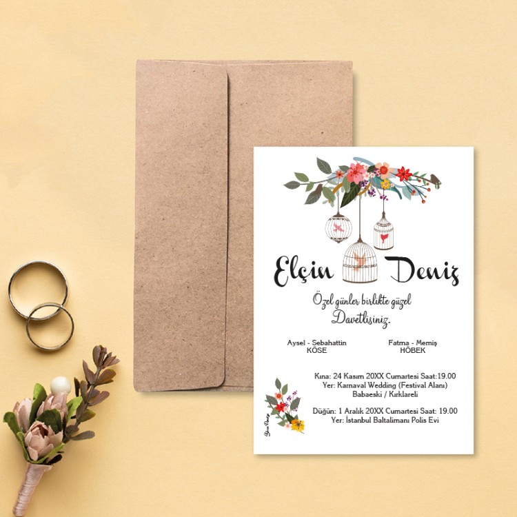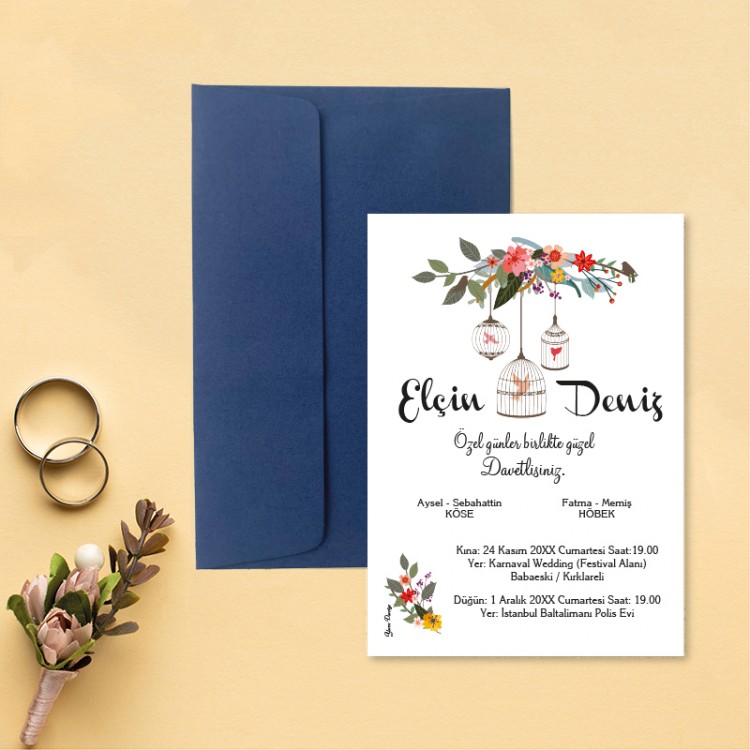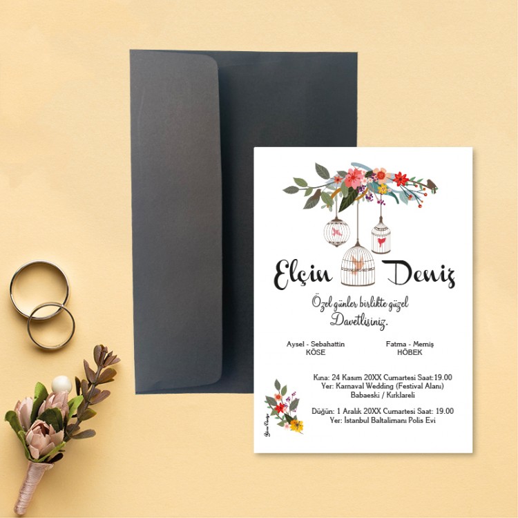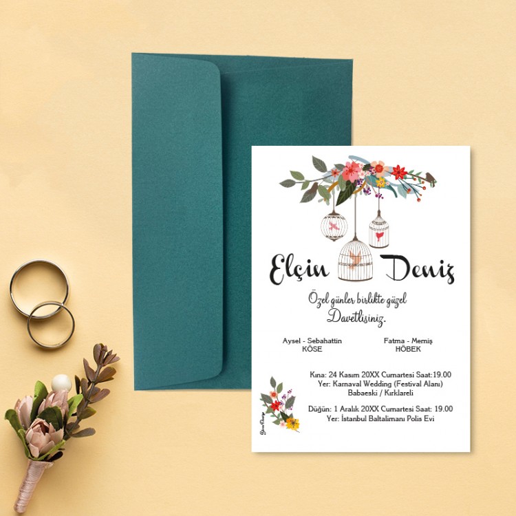 • Davetiye ölçüsü: 113 x 158 mm