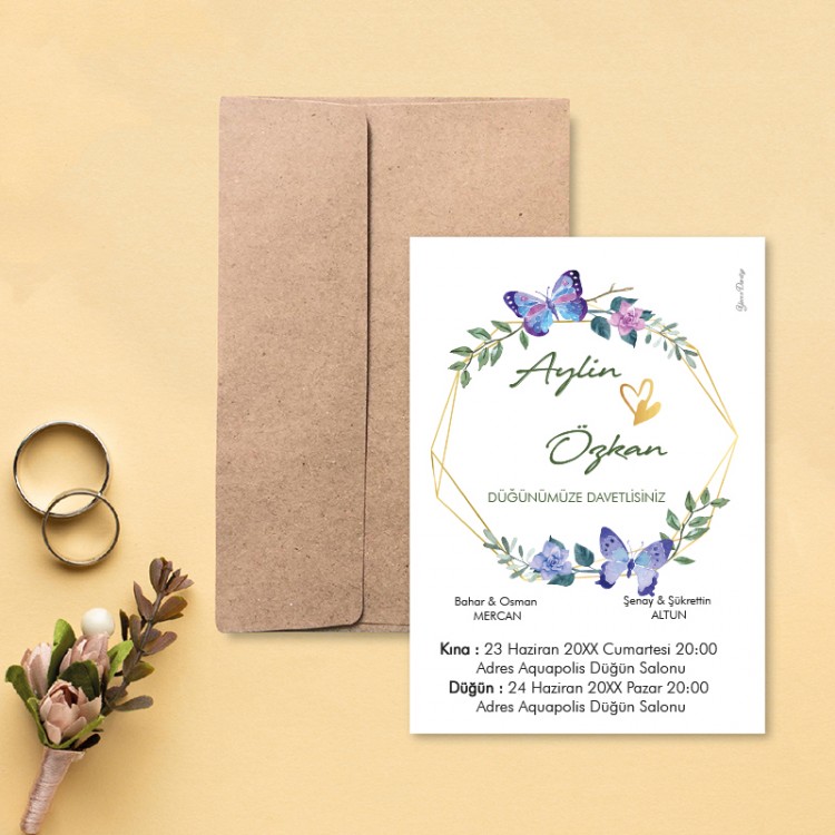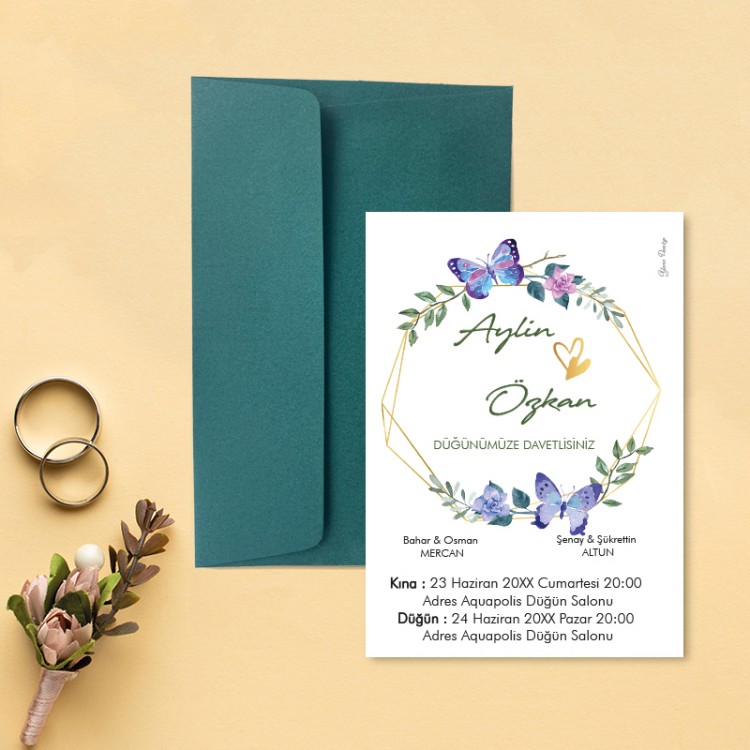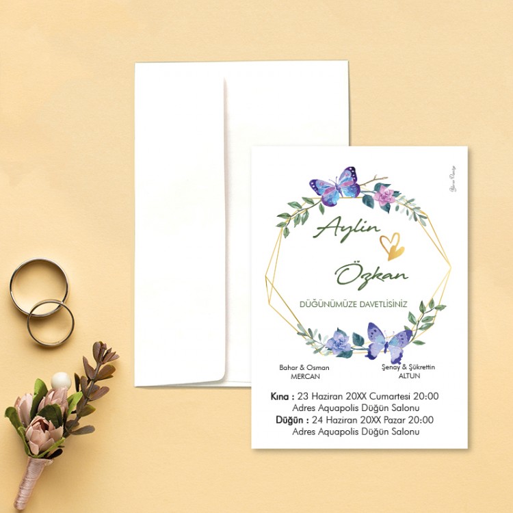 • Davetiye ölçüsü: 113 x 158 mm