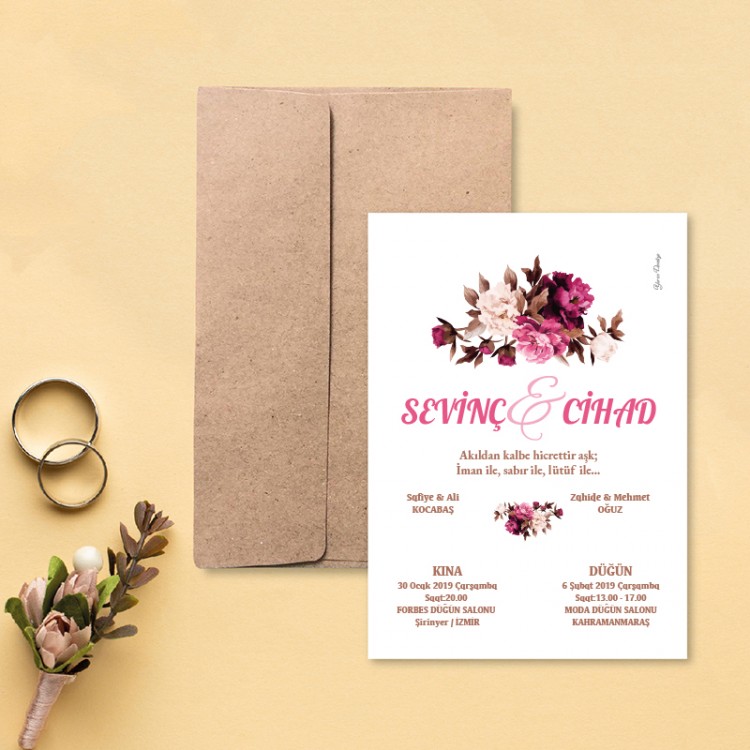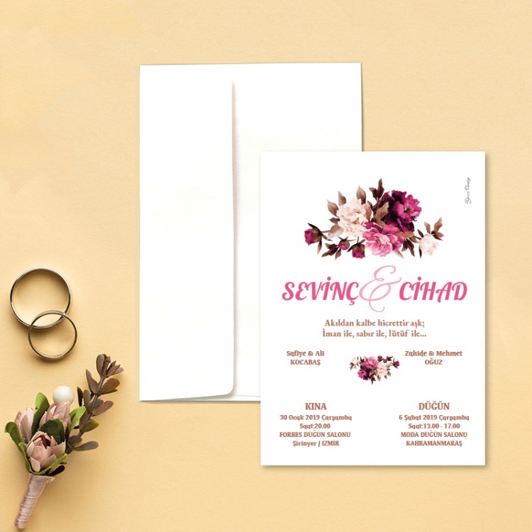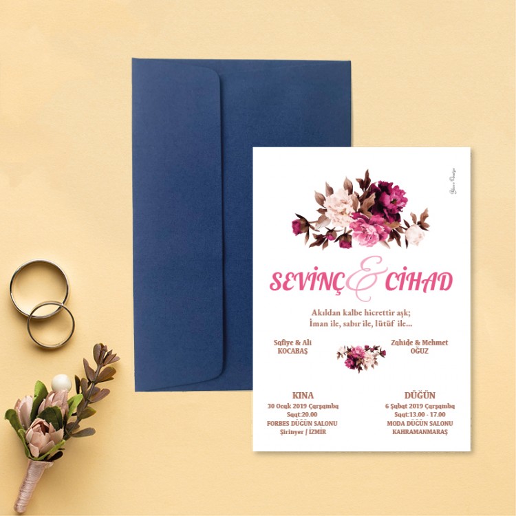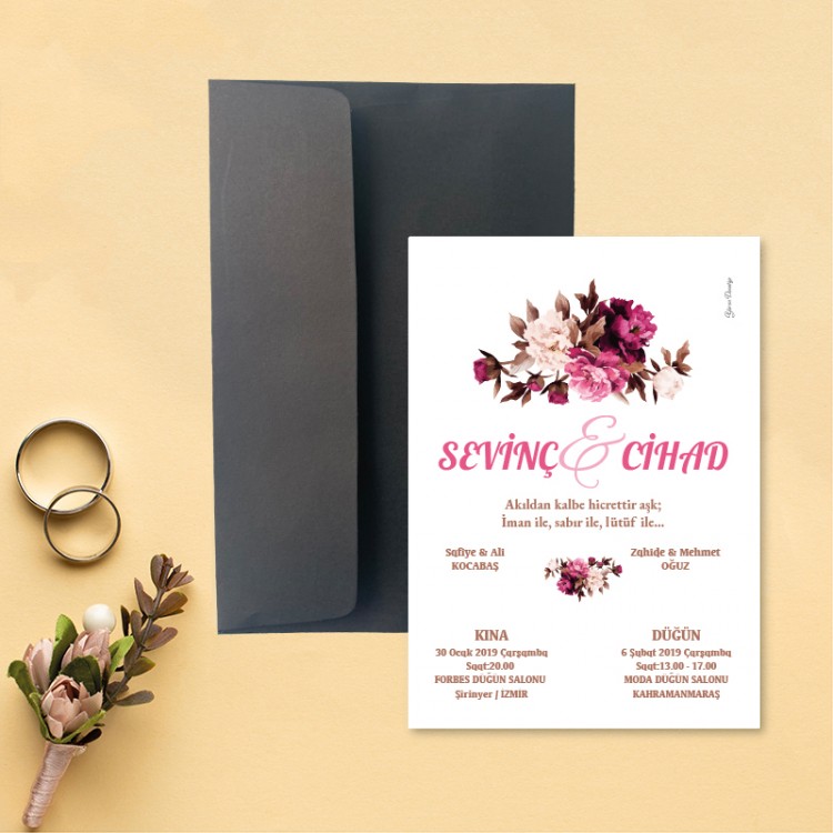 • Davetiye ölçüsü: 113 x 158 mm