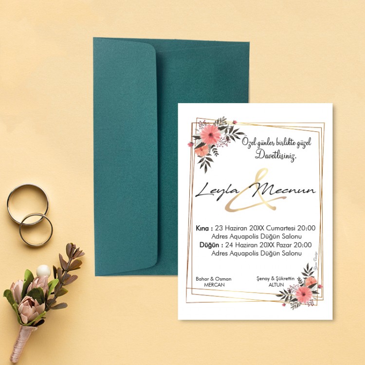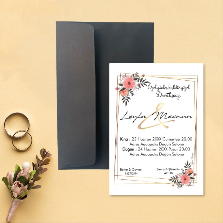 Davetiyenizi istediğiniz şekilde hazırlayıp beğendiğiniz zarf rengi ile sipariş verebilirsiniz.
