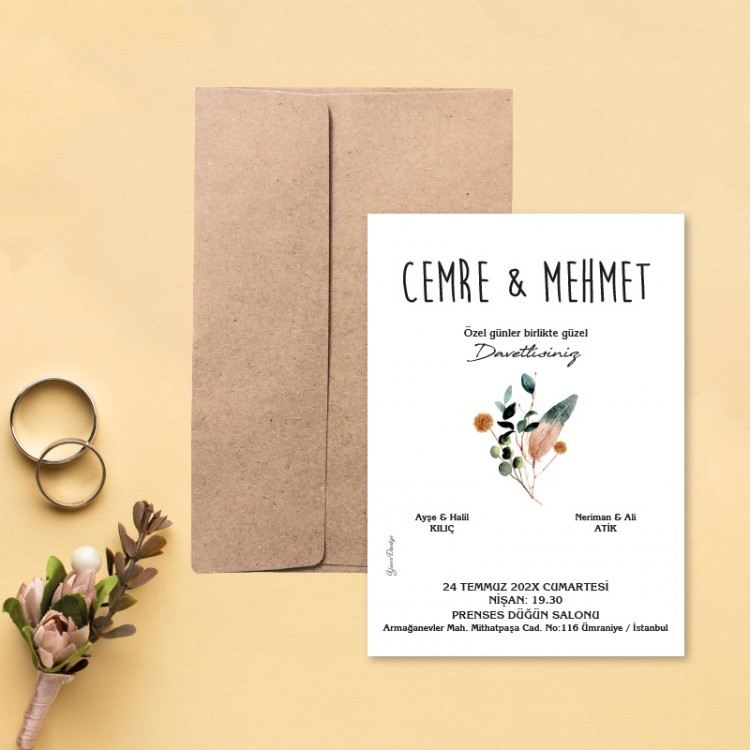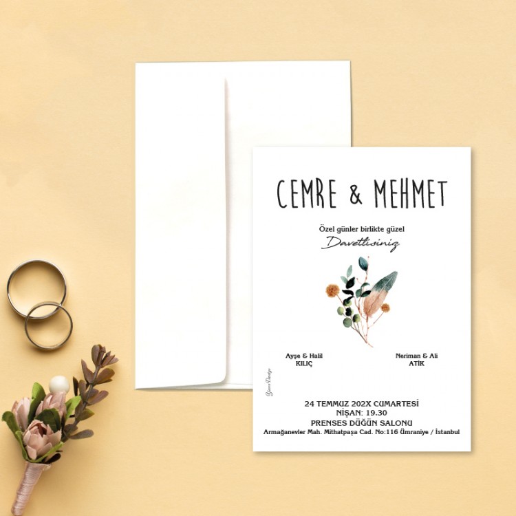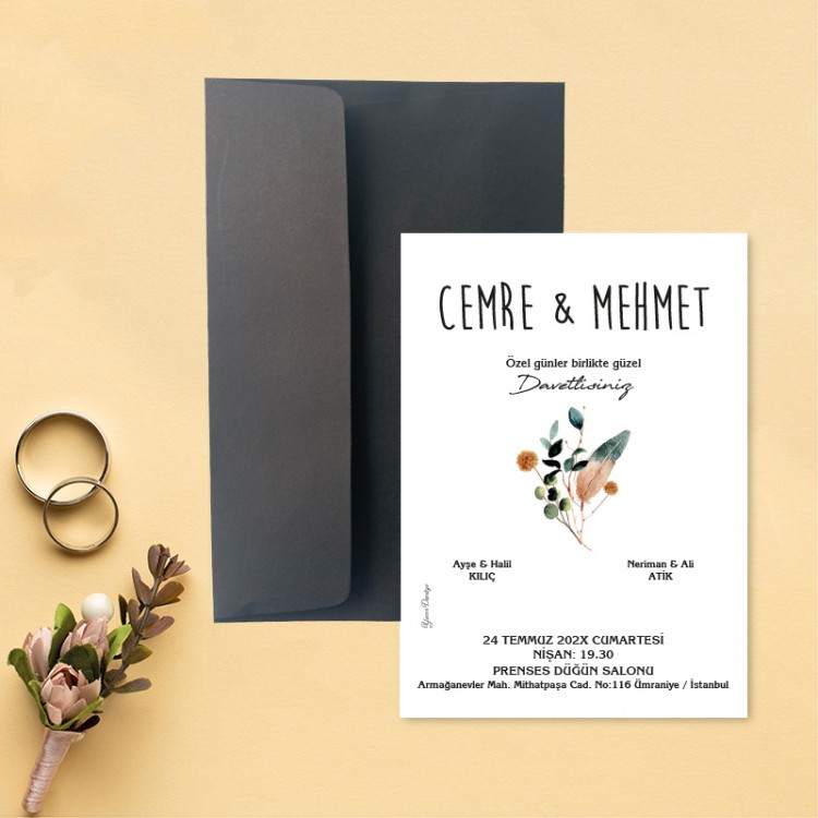 Davetiyenizi istediğiniz şekilde hazırlayıp beğendiğiniz zarf rengi ile sipariş verebilirsiniz.
