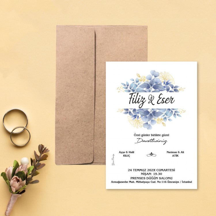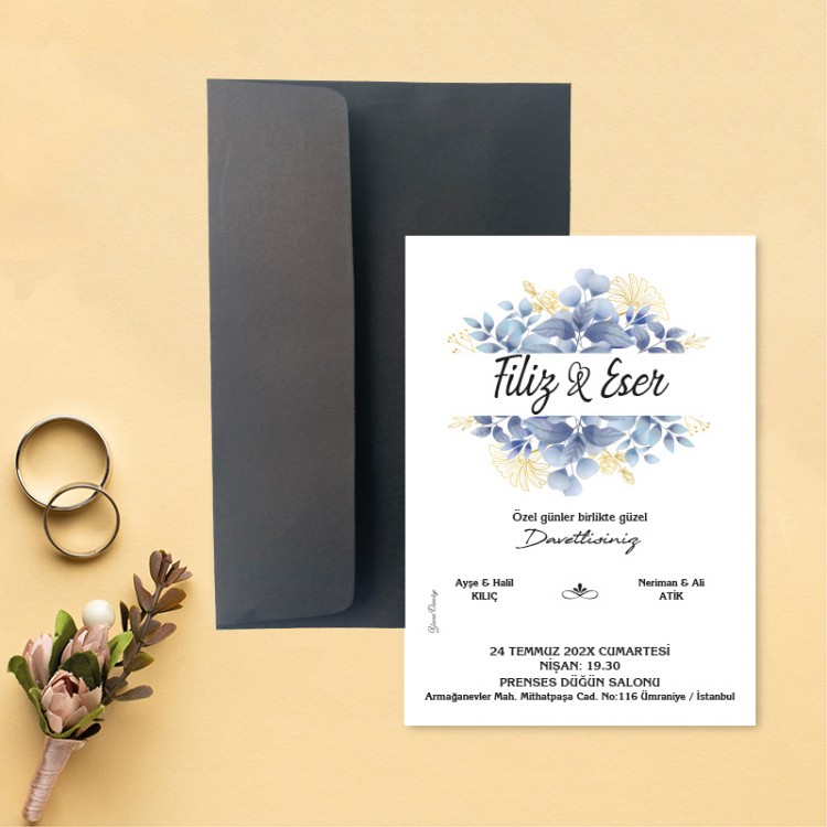 Davetiyenizi istediğiniz şekilde hazırlayıp beğendiğiniz zarf rengi ile sipariş verebilirsiniz.