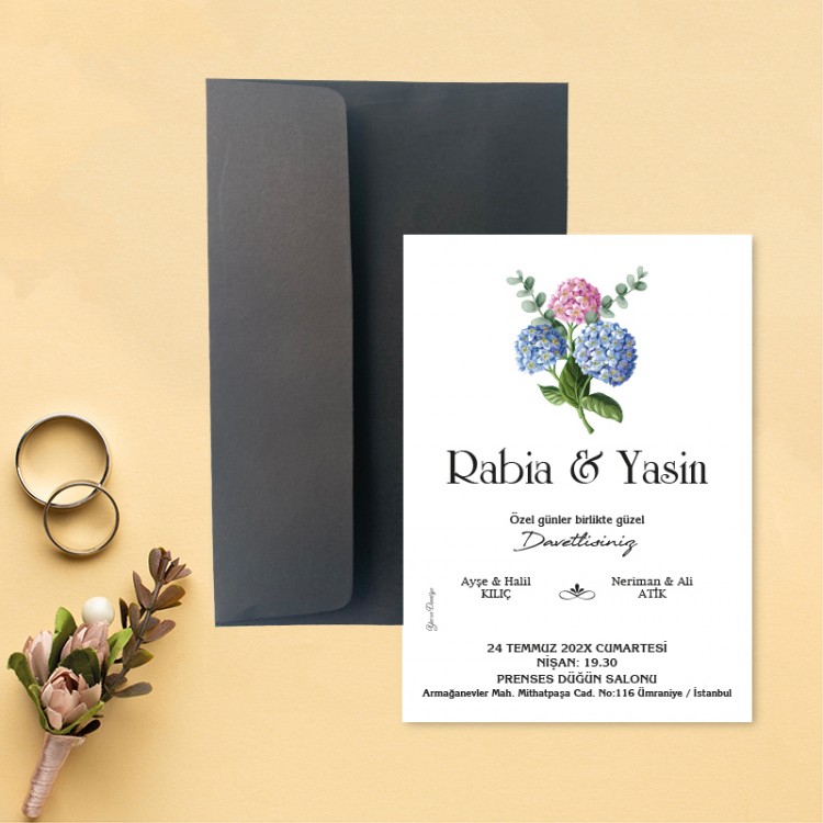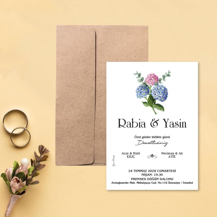Davetiyenizi istediğiniz şekilde hazırlayıp beğendiğiniz zarf rengi ile sipariş verebilirsiniz.