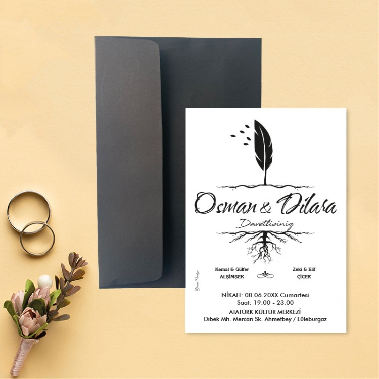 Davetiyenizi istediğiniz şekilde hazırlayıp beğendiğiniz zarf rengi ile sipariş verebilirsiniz.