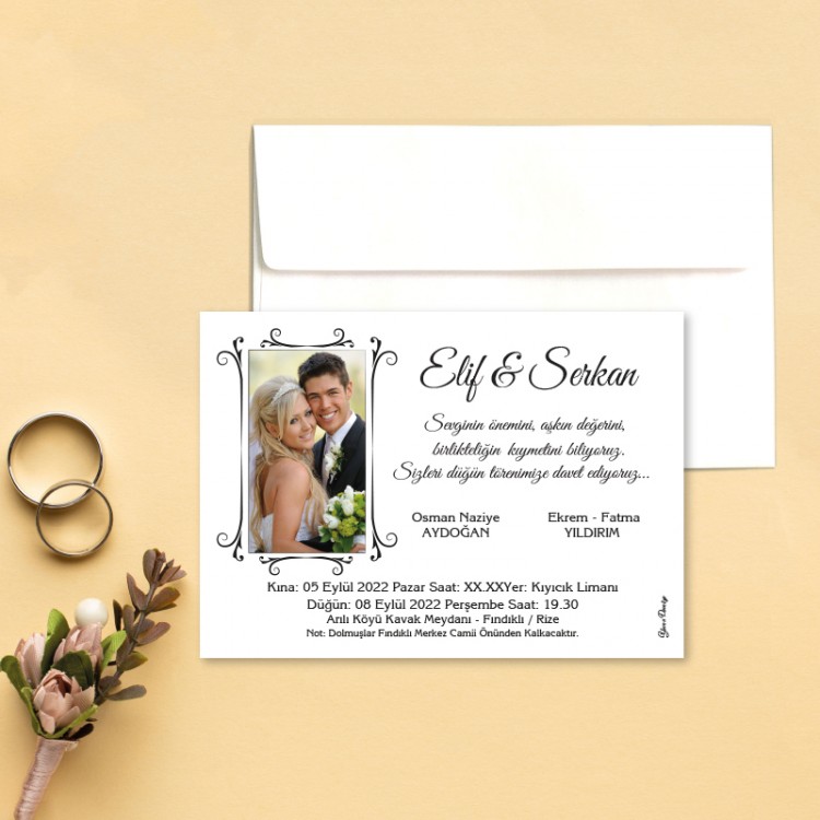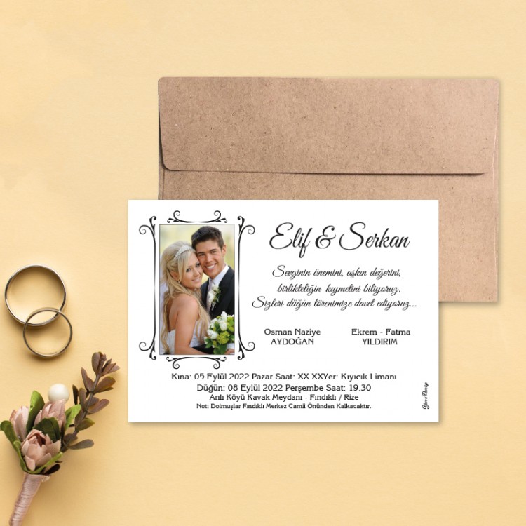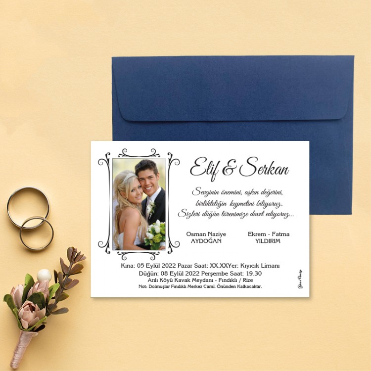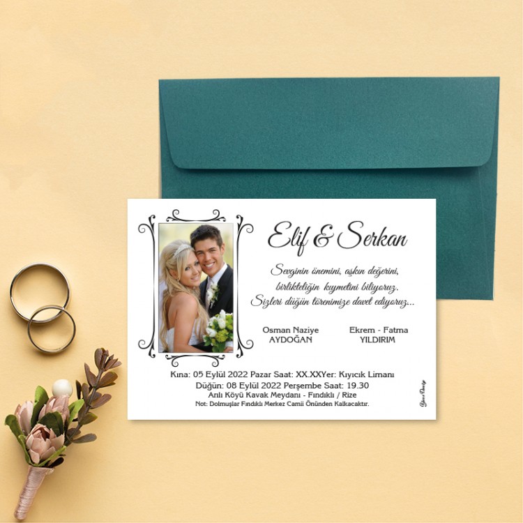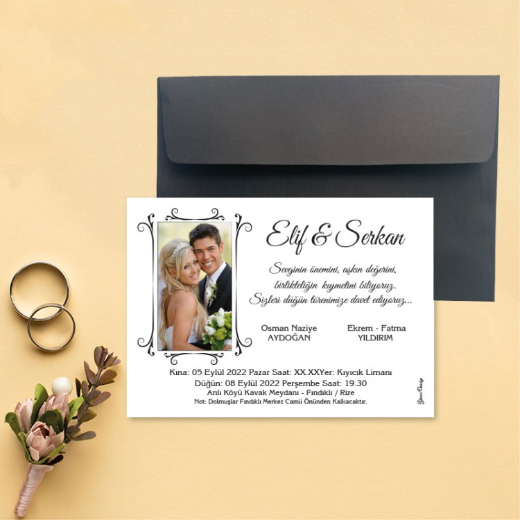 Davetiyenizi istediğiniz şekilde hazırlayıp beğendiğiniz zarf rengi ile sipariş verebilirsiniz.