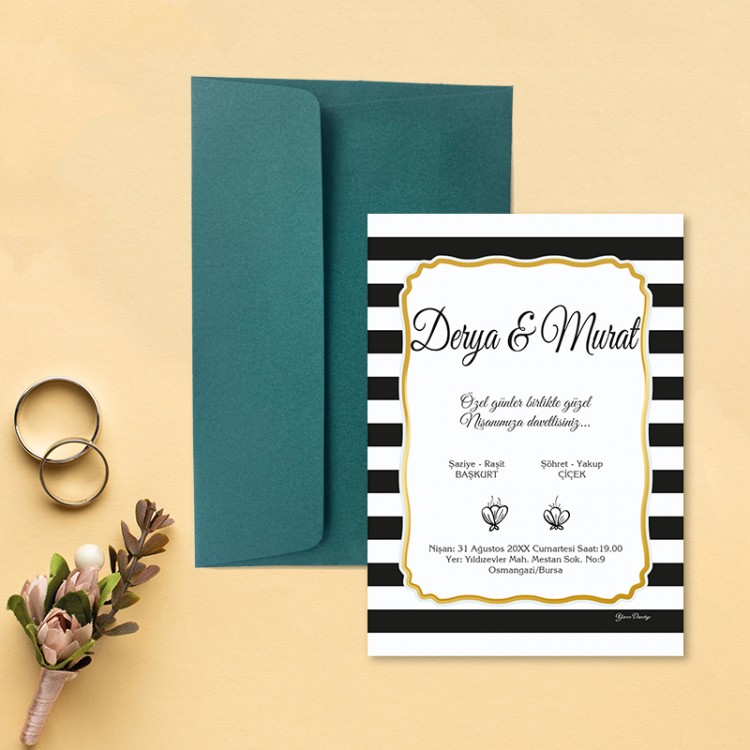 Davetiyenizi istediğiniz şekilde hazırlayıp beğendiğiniz zarf rengi ile sipariş verebilirsiniz.
