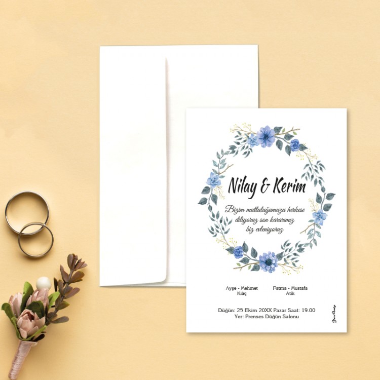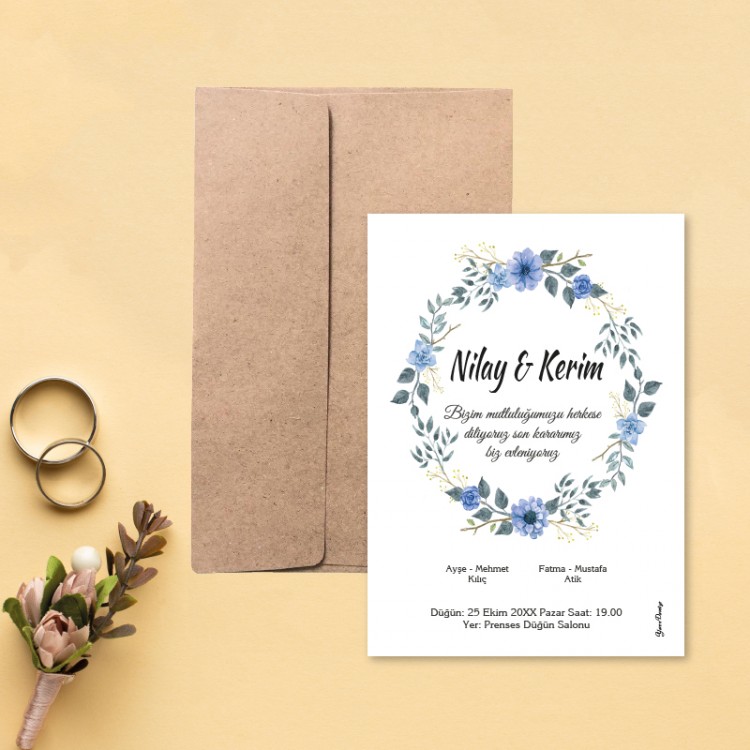 Davetiyenizi istediğiniz şekilde hazırlayıp beğendiğiniz zarf rengi ile sipariş verebilirsiniz.