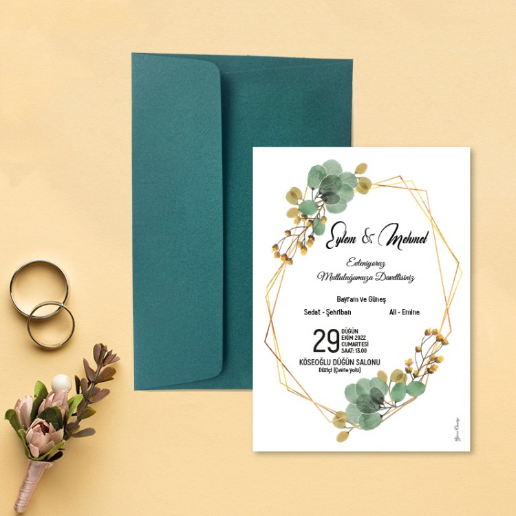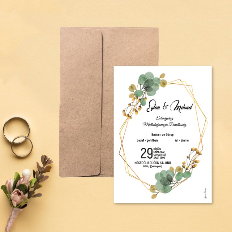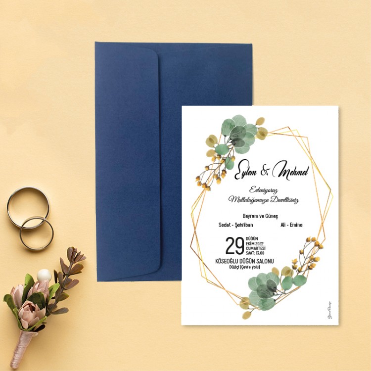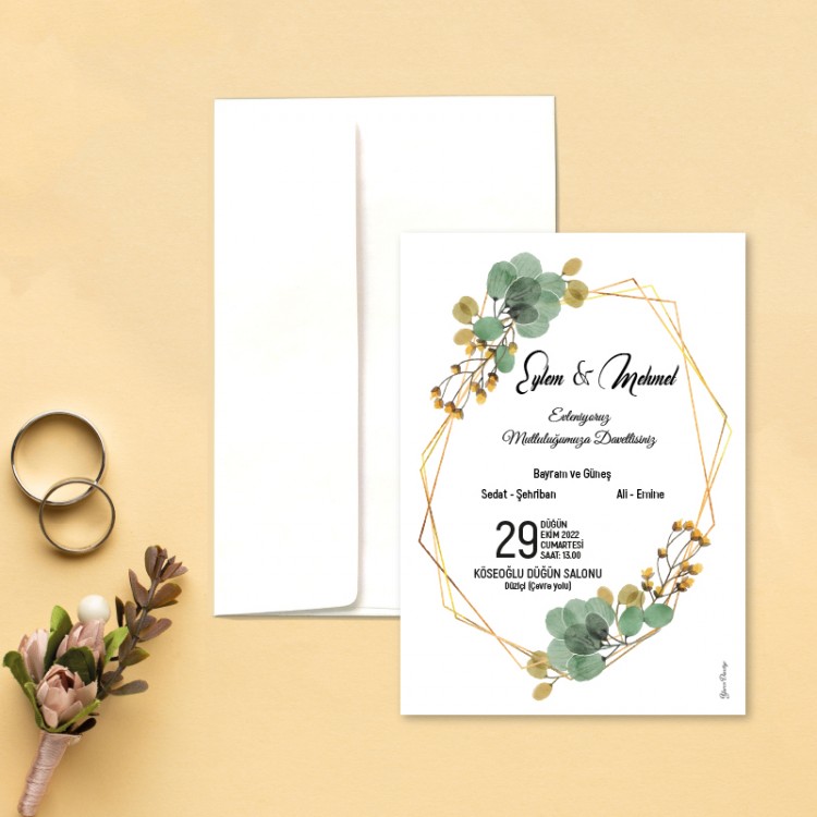 • Davetiye ölçüsü: 113 x 158 mm