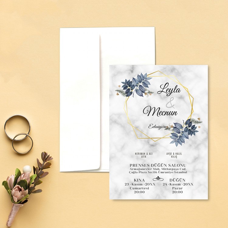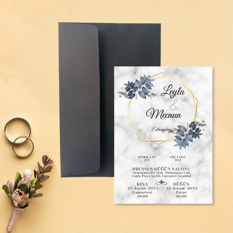 • Davetiye ölçüsü: 113 x 158 mm