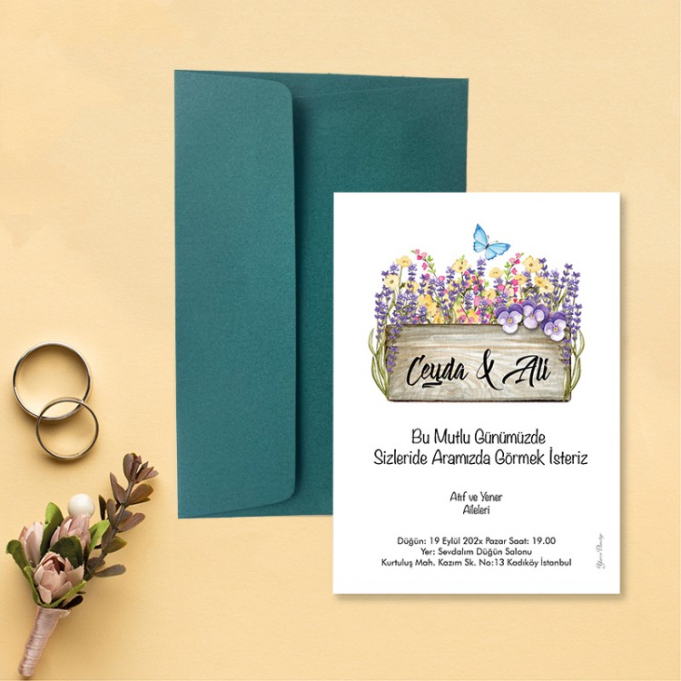 Davetiyenizi istediğiniz şekilde hazırlayıp beğendiğiniz zarf rengi ile sipariş verebilirsiniz.