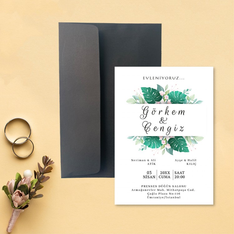 Davetiyenizi istediğiniz şekilde hazırlayıp beğendiğiniz zarf rengi ile sipariş verebilirsiniz.