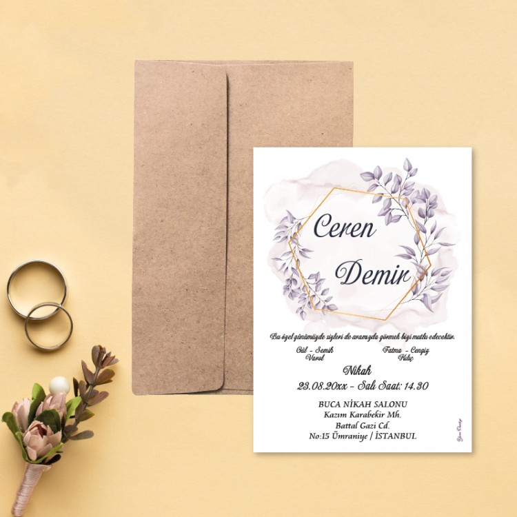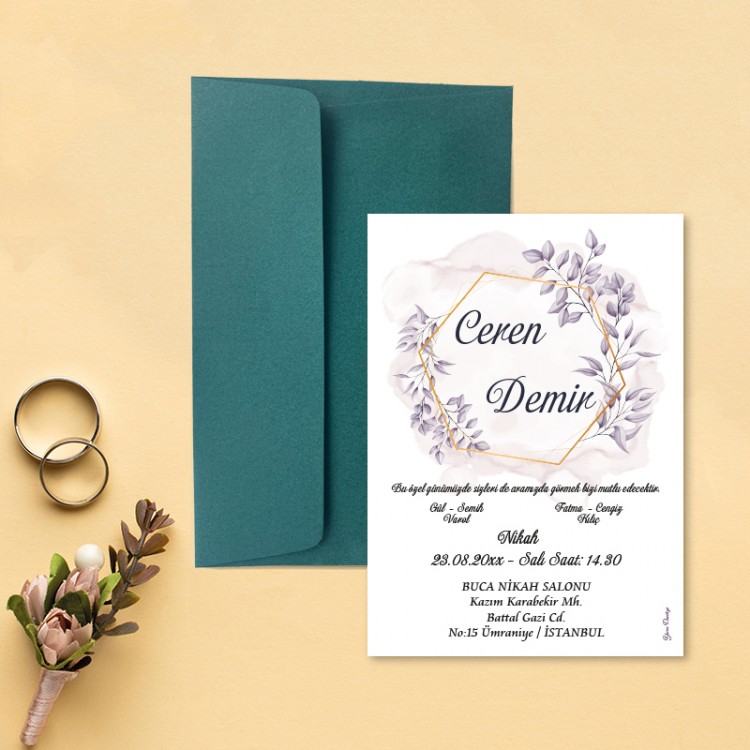 Davetiyenizi istediğiniz şekilde hazırlayıp beğendiğiniz zarf rengi ile sipariş verebilirsiniz.