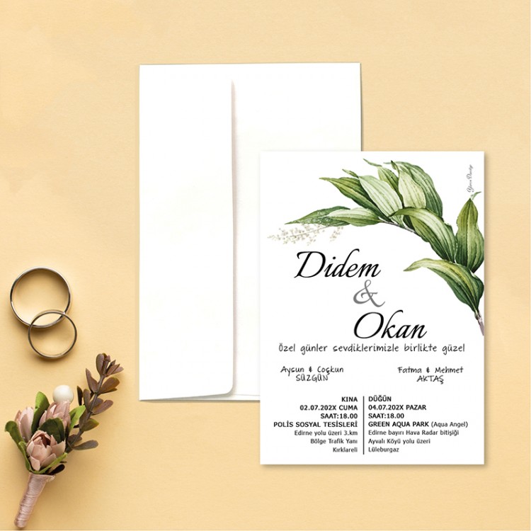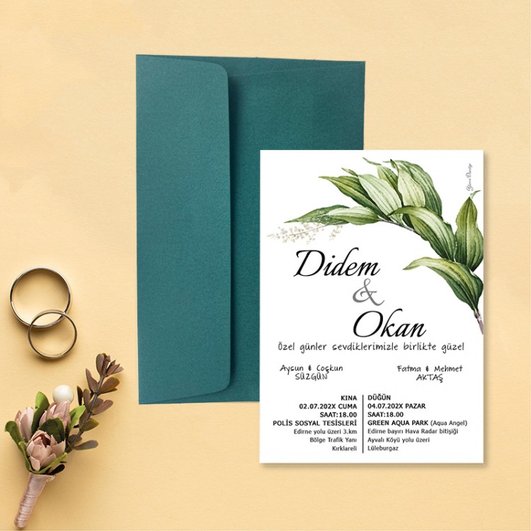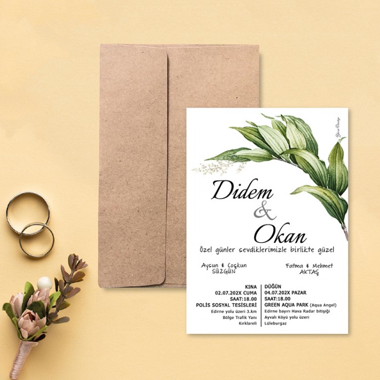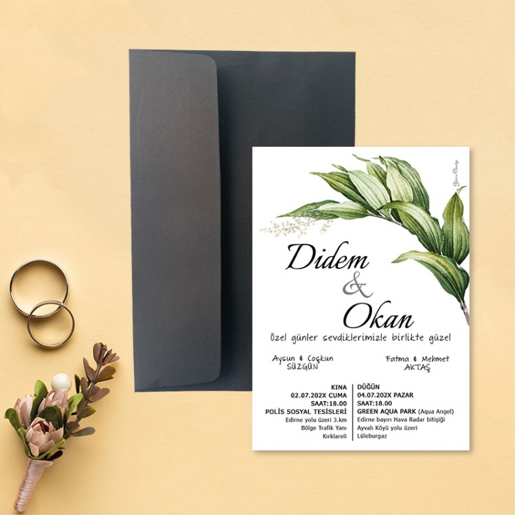 Davetiyenizi istediğiniz şekilde hazırlayıp beğendiğiniz zarf rengi ile sipariş verebilirsiniz.