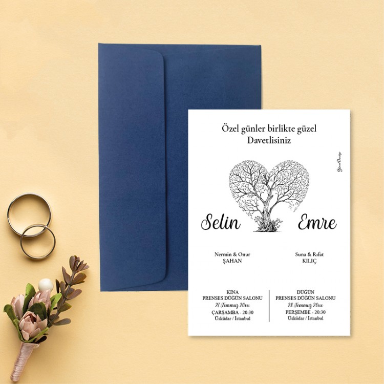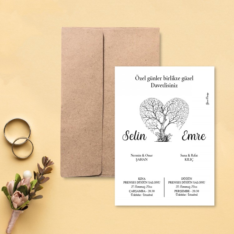 • Davetiye ölçüsü: 113 x 158 mm