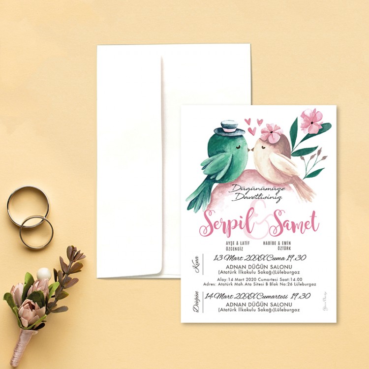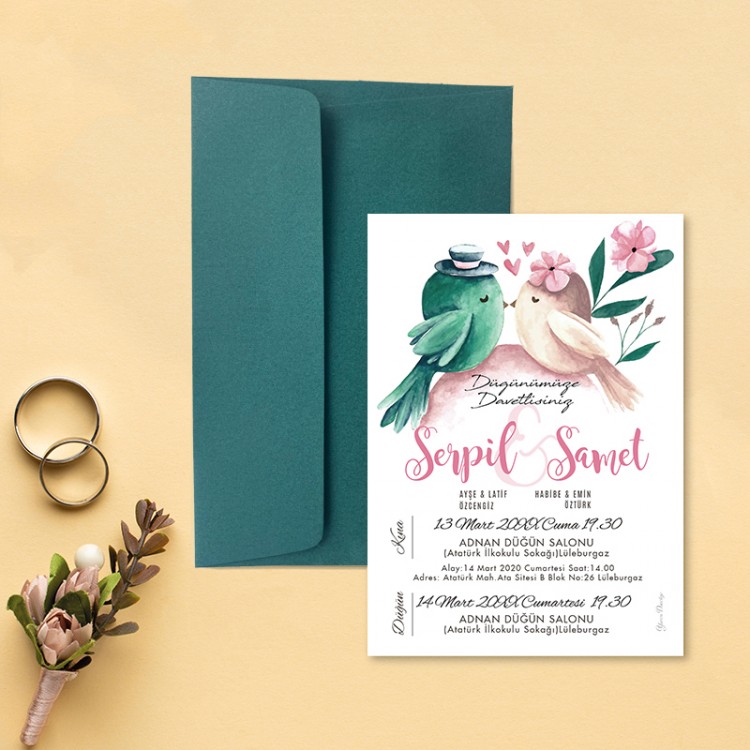 Davetiyenizi istediğiniz şekilde hazırlayıp beğendiğiniz zarf rengi ile sipariş verebilirsiniz.