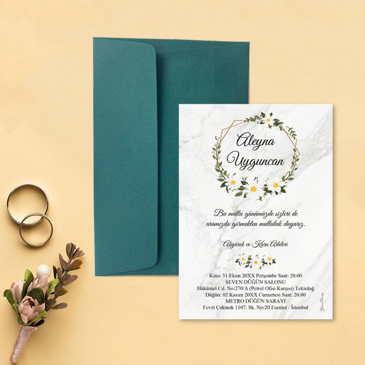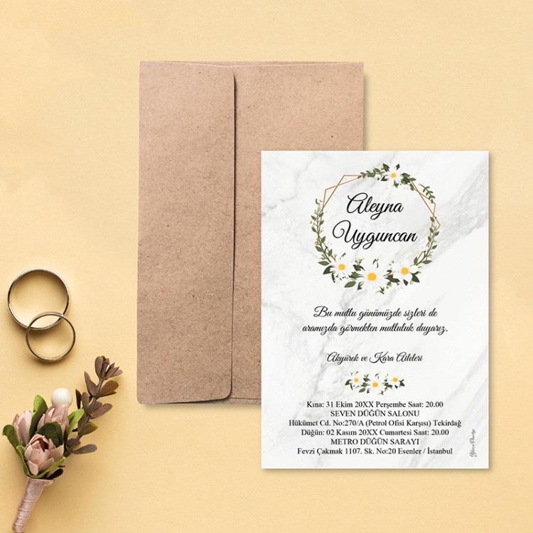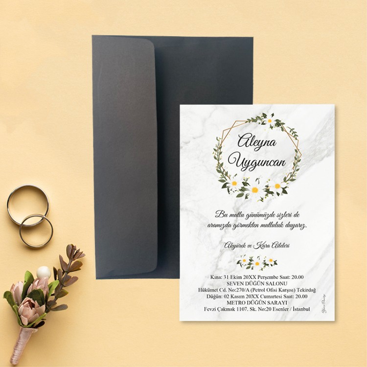 • Davetiye ölçüsü: 113 x 158 mm